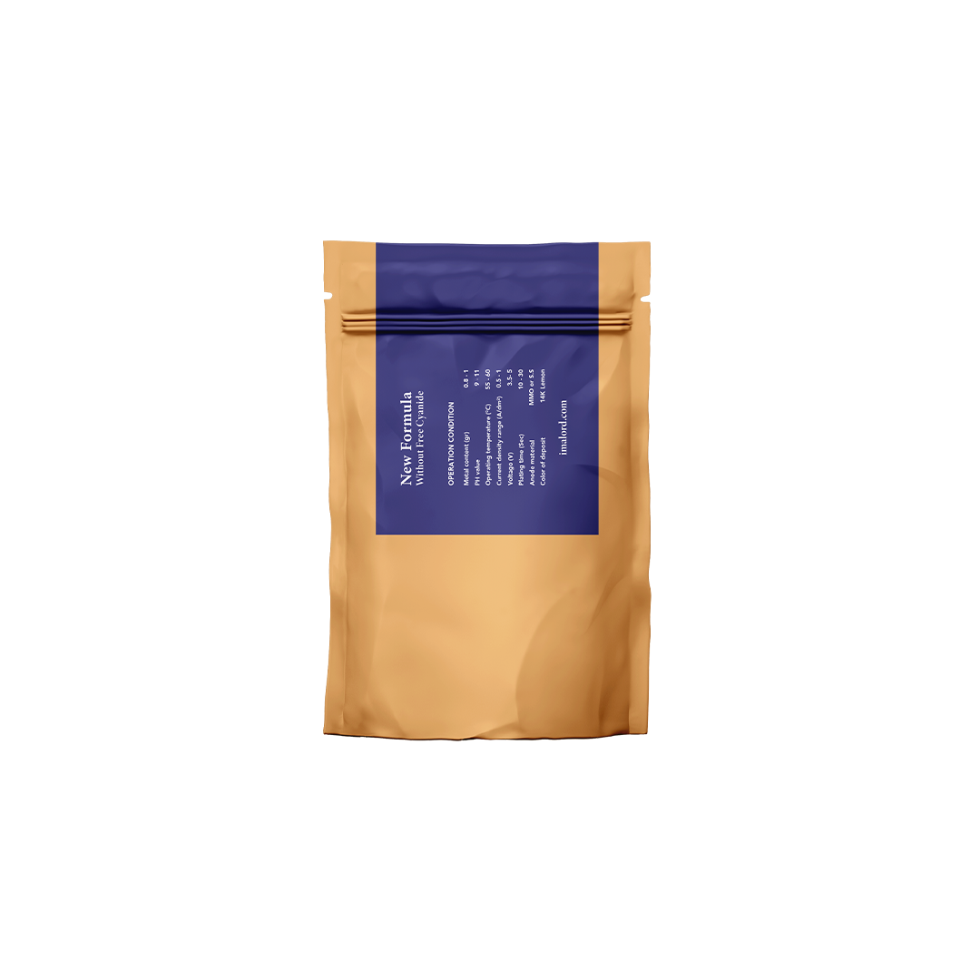 پس از انحلال پودر الکترولیت در یک لیتر آب مقطردر دمای 55 الی 60 درجه سانتیگراد، به مقدار 1.47 گرم نمک طلای 68 درصد سیانید مضاعف طلا نیز به محلول الکترولیت اضافه گردد، در دمای ذکر شده با ولتاژ 4 الی 5 و به مدت 10الی 20 ثانیه فرآیند آبکاری یه منظور رسیدن به پوشش طلا با تونالیته رنگ 14 عیار (زرد لیمویی) با جریان های پایین و در حدود 0/5 آمپر بر دسی متر مربع با آند ترجیحا میکس متال یا استیل 316 انجام شود